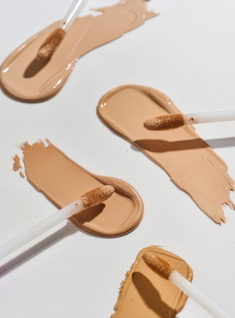 For a lasting, smooth finish, apply Primer first, then Foundation, and finish by dabbing and blending Concealer onto targeted areas.